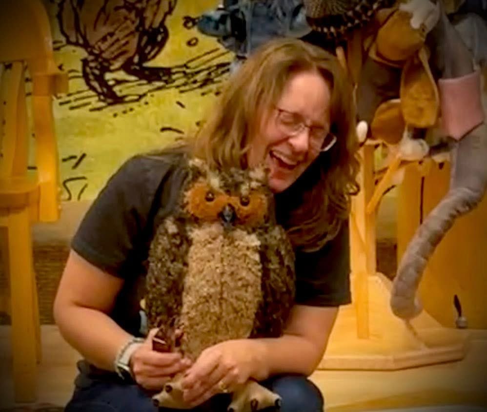 “For younger children, I have Wilbur, my life-size stuffed owl. They love to gently pet his belly. If they’re interested, I point out his talons or discuss his size or that he’s very close to the size of a real great horned owl. This often leads into how I got to hold an owl even larger than Wilder when I was researching owls and met with my expert. (I show the author photo from Whooo Knew? The Truth About Owls if they seem interested.)”